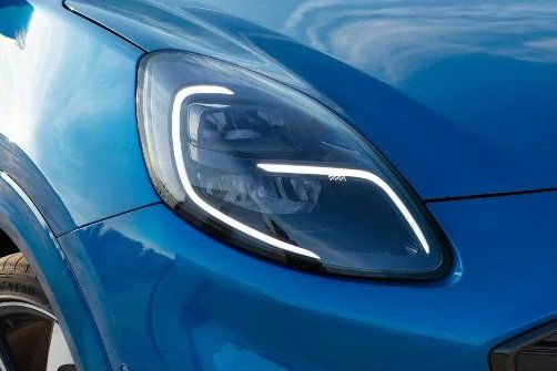 如何增加豪華感?Puma ST-Line Vignale透過水箱護罩鍍鉻材質妝點、前氣壩專屬塗裝、後保桿車身同色處理,並於前保桿、窗框、車外後視鏡、側裙等處施以消光金屬材質,並標配LED頭燈。