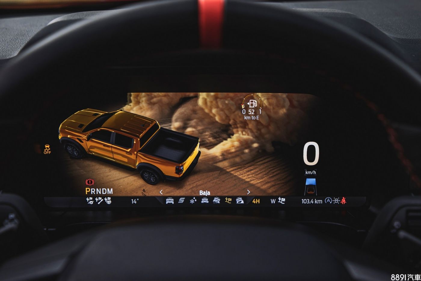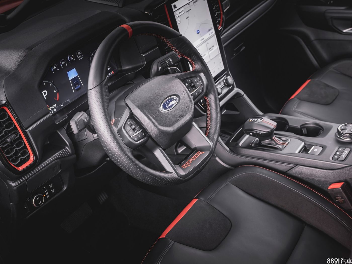 作為車系頂規車型,Ranger Raptor配備方面也不顯含糊,全車座椅換上專屬運動化設計,搭配無處不在的紅色縫線與飾板,熱血氣息相當濃厚。方向盤換上鎂合金換檔撥片,搭配12.4吋數位儀錶、12吋直立觸控螢幕、SYNC 4介面與B&O音響,科技與熱血在Ranger Raptor身上得以並存。