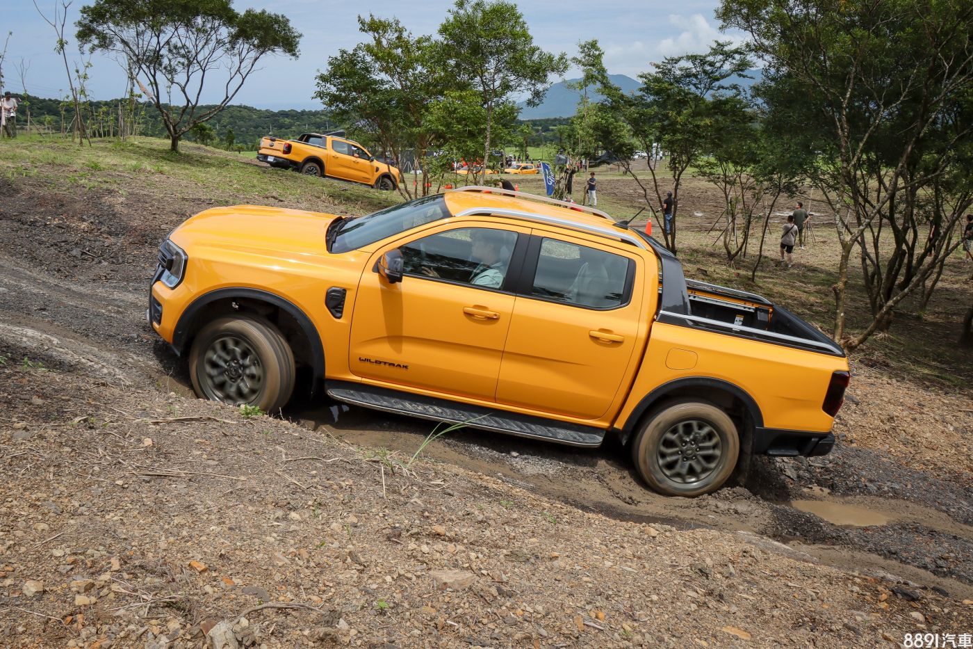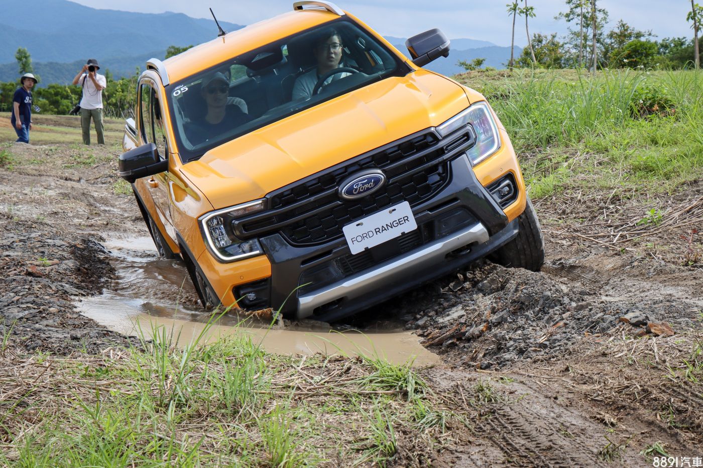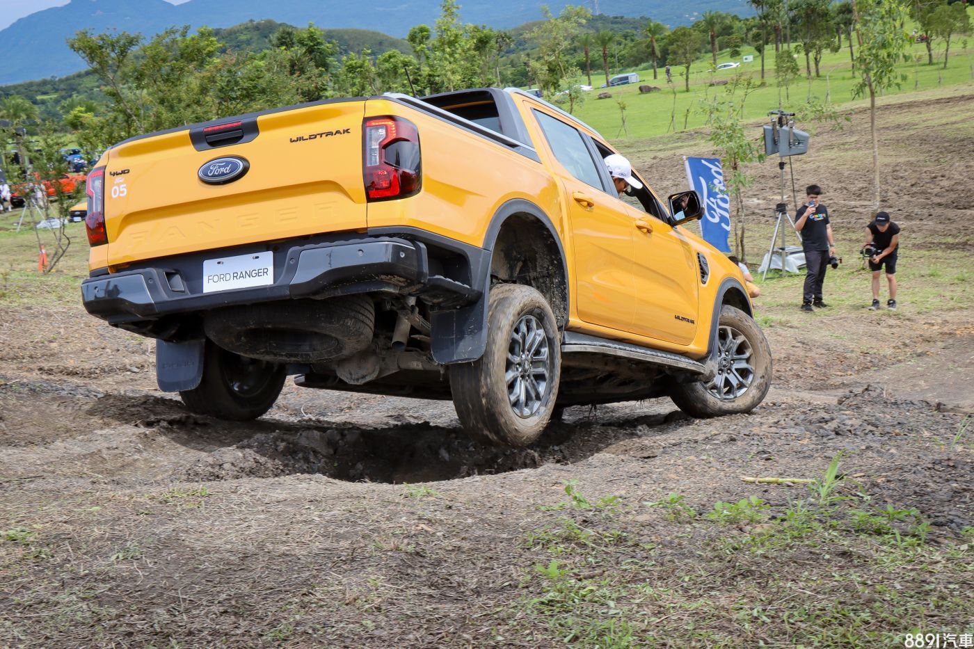 在發表會結束後,原廠也安排20分鐘的越野快閃體驗,時間不長,但在嚴苛的關卡、下過雨的泥濘地,依舊能感受到大改款Ranger的越野能力。這次體驗車型為高規Wildtrak版本,關卡一開始就是泥地斜坡,在教練指示下,將駕駛模式切入泥濘模式,並將檔位固定於4L低速檔位,此時Wildtrak後差速器也進入鎖定狀態。