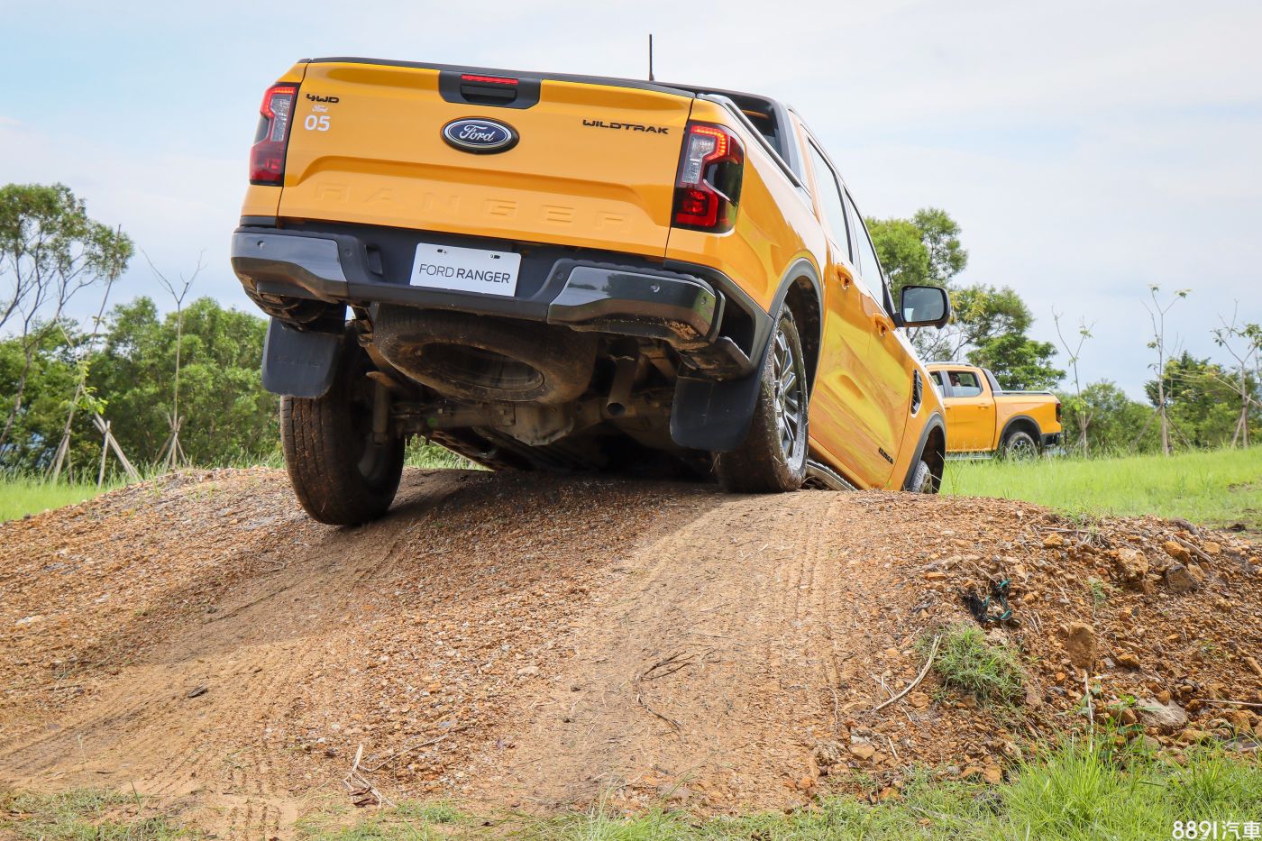 連續大土坡地形,考驗Ranger進入、跨越、離去黃金三角能力,面對第一個土坡,30度進入角還算有餘裕,下巴安全通過,但如果直直進土坡,跨越角21度還是會磨一點點肚子,稍微抓斜一點就能安全通過。