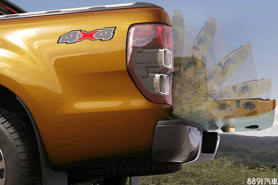 小改Ranger在外觀上的最大變化多集中在車頭設計,大型水箱護罩換上雙橫柵設計,視覺上更顯寬扁;同時,前保桿上的深色飾板不再往側向延伸,讓車頭整體氣勢更具悍性。保桿下方以更大面積的銀色護板做妝點,並可見其上鑲嵌有停車輔助雷達,此乃小改後新增配備!(原款僅標配後方雷達)