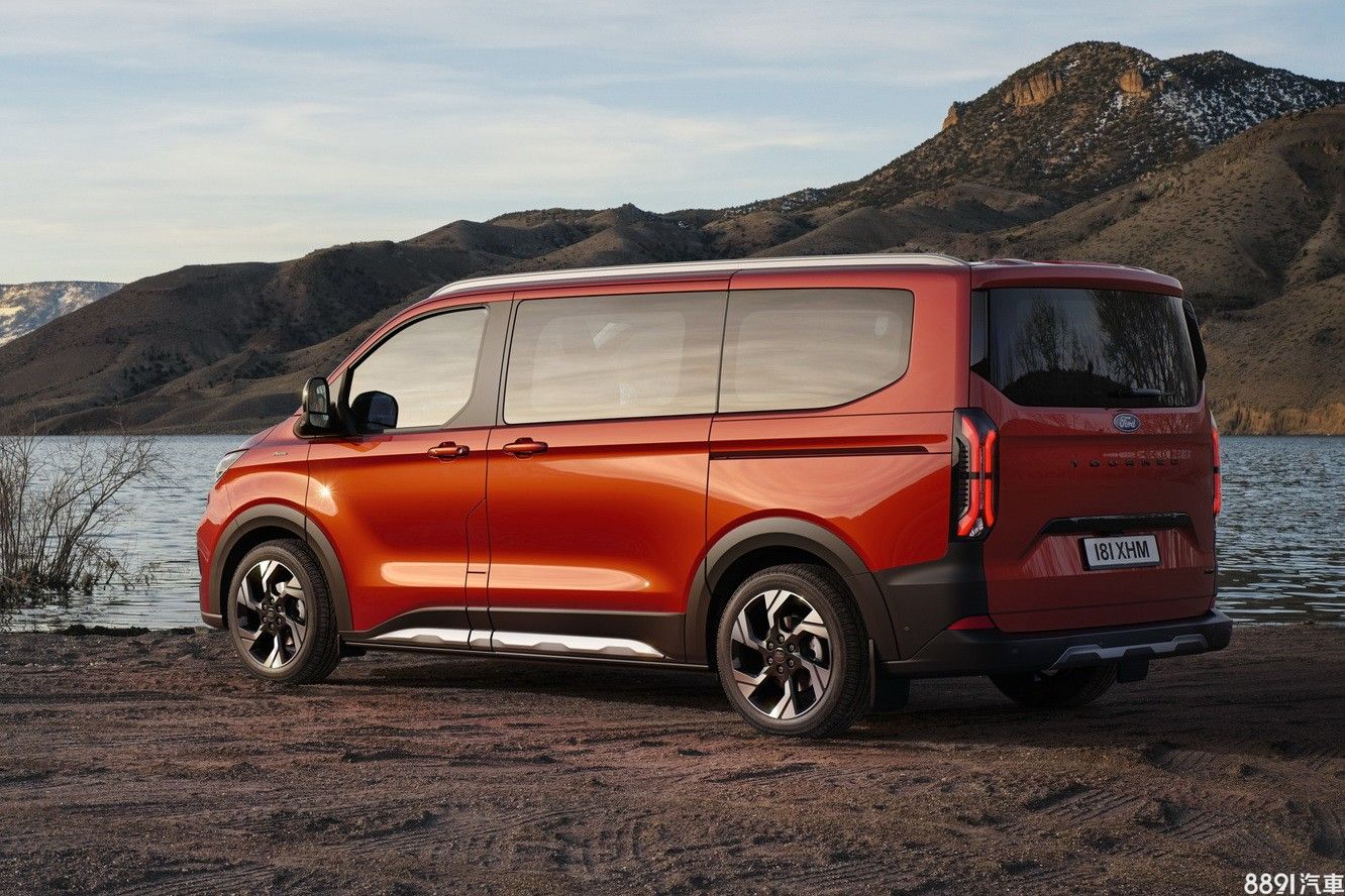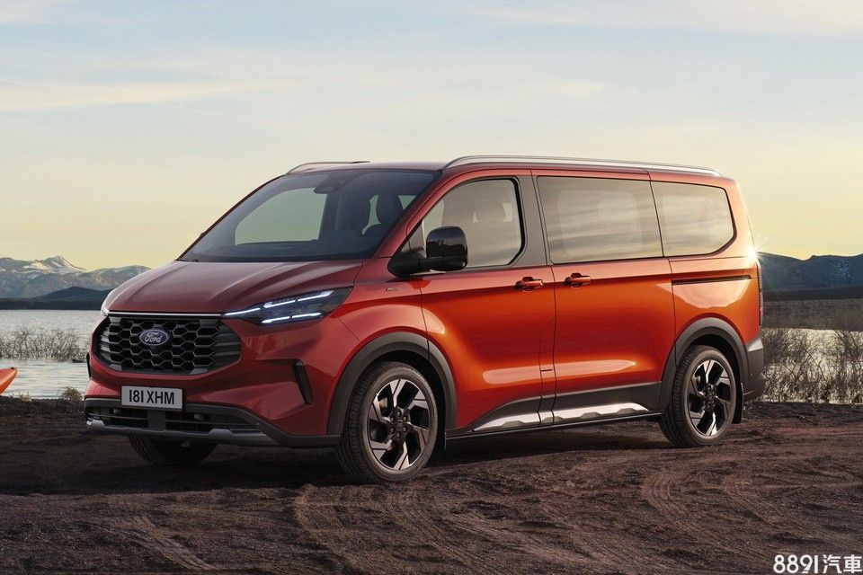 大改款Tourneo Custom外觀比照Transit Custom,不過是多了後窗,不同的是提供有Active和Titanium版本,前者(如圖)透過大量防刮材質、車頂行李架、側裙、蜂巢狀水箱罩、造型活潑的鋁圈,塑造跨界氛圍。