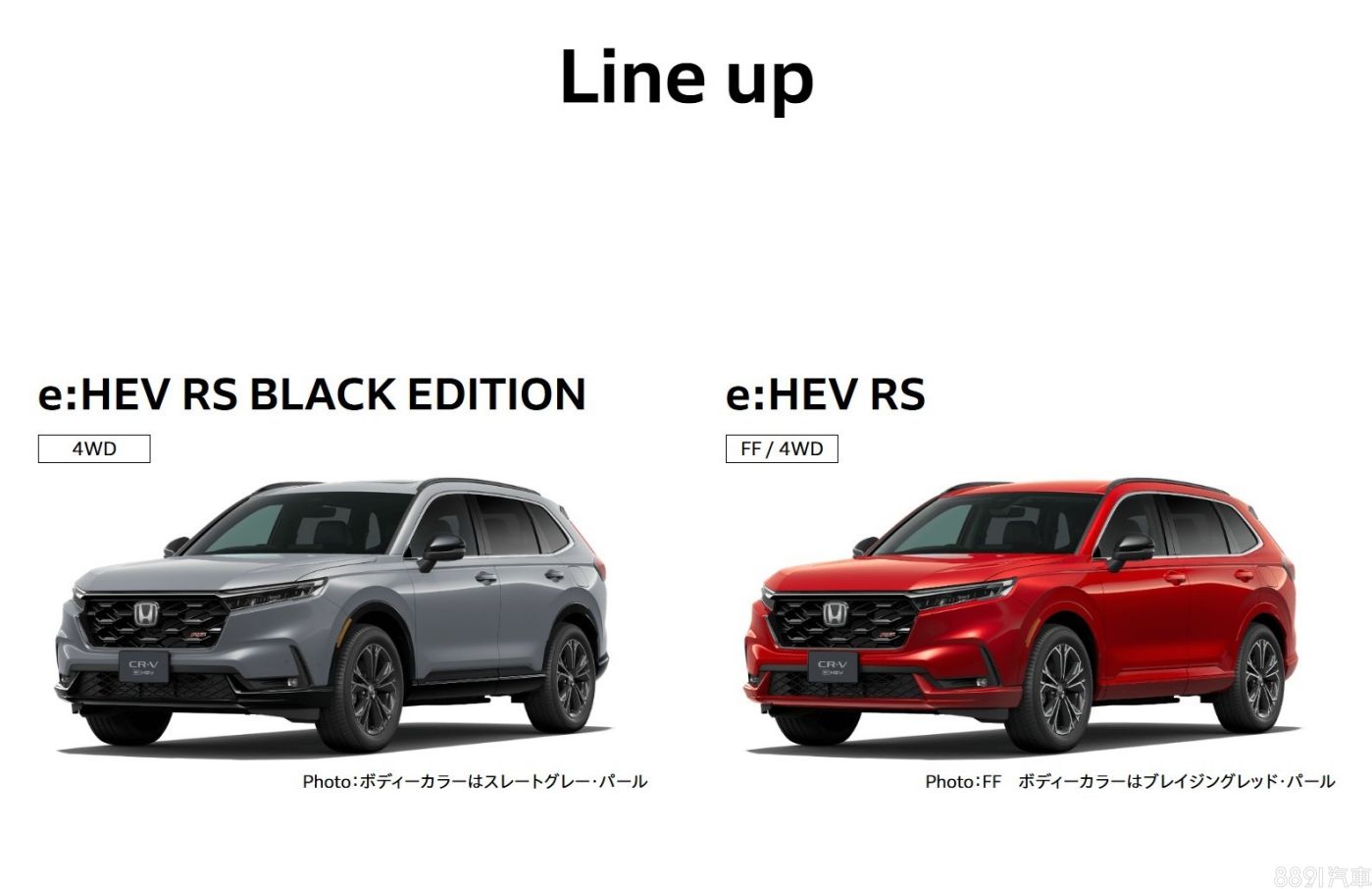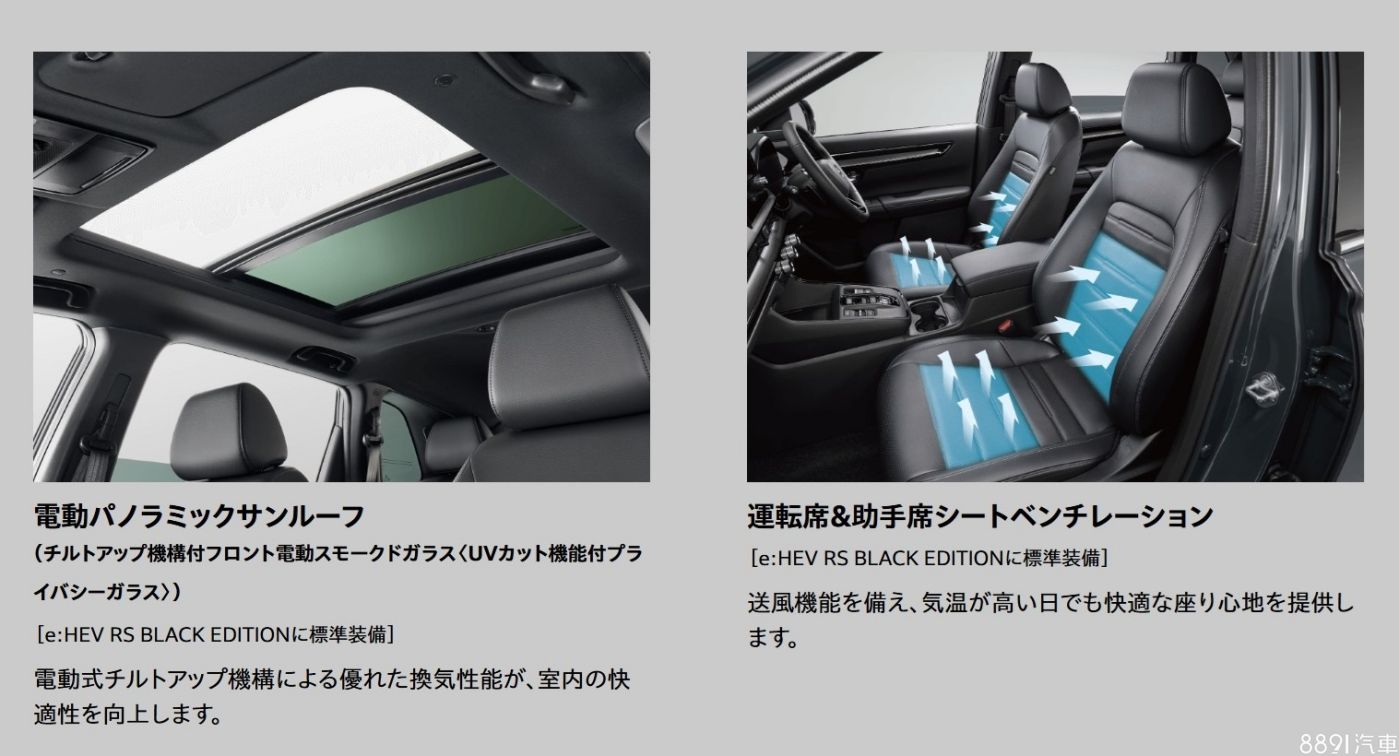 回到日本市場,六代CR-V統一為RS運動化版本,前後保桿搭載空力套件,並在水箱護罩及尾門貼上RS專屬紅色徽飾,高規的「Black Edition」則是進一步針對車身細節與19吋鋁圈黑化,增添運動氣息。