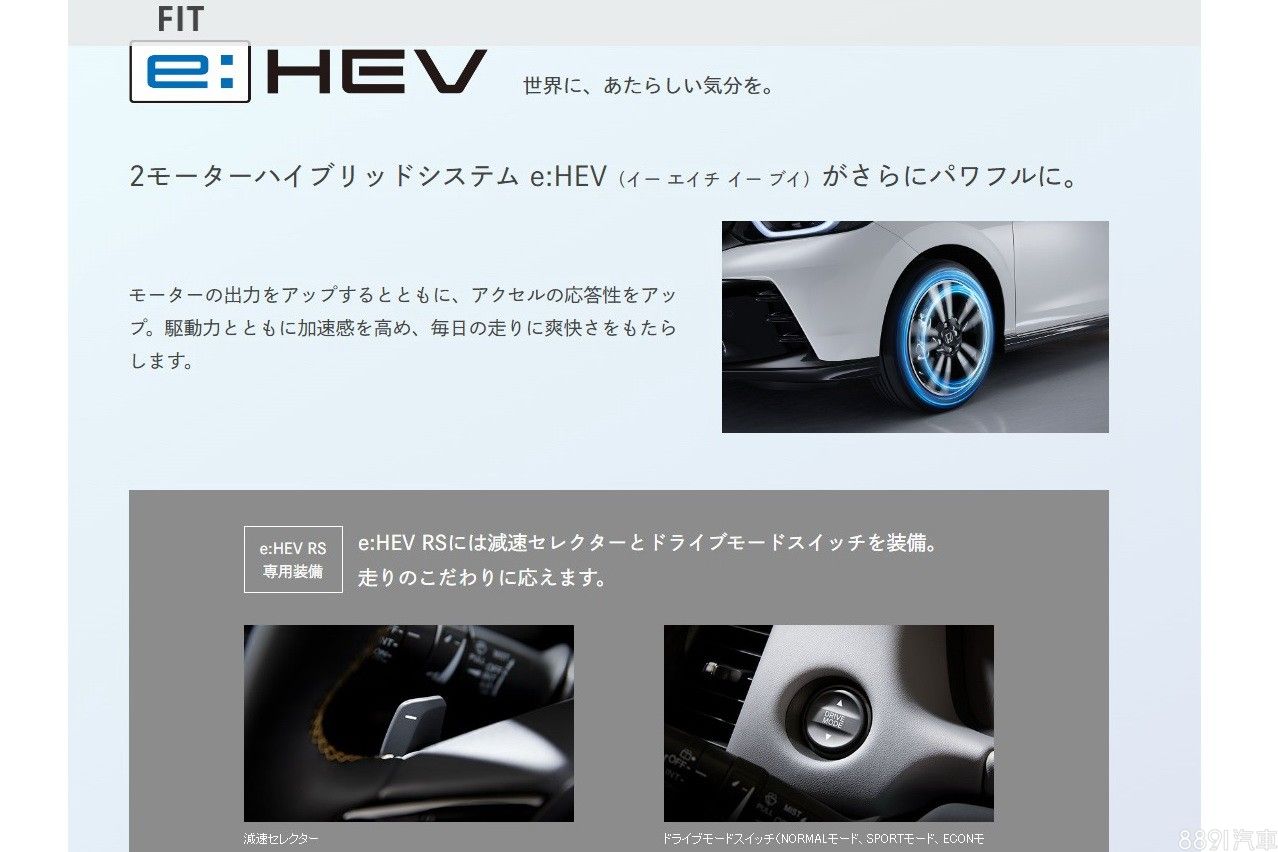 小改款Fit持續搭載名為e:HEV的油電系統,已知原廠會提升馬達輸出並改善油門反應回饋,RS版本擁有動能回收強度調整撥片,並可選普通、運動和節能三種駕駛模式,汽油選項也會繼續提供,但是否仍為1.3升自然進氣汽油引擎配置尚未可知。