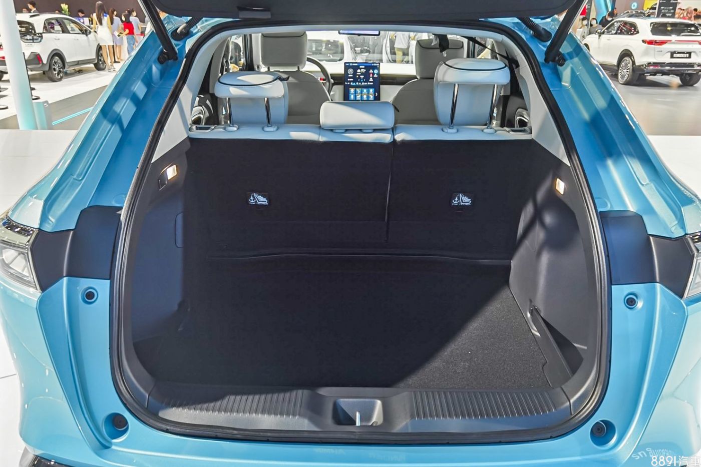 由於電池組放在底盤中央,所以沒有影響到行李廂空間,平整度和深度都不錯,主要因為車尾斜背造型,要注意行李較多時會碰到後檔風玻璃。