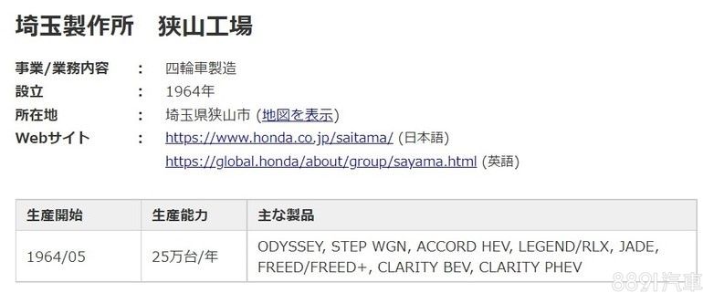 Honda狹山工廠預計2021年底關廠,包含日規Odyssey、Legend、Clarity等三款車也確定停產,據日本媒體表示,Honda內部已於三月底通知當地經銷商,Clarity計畫8月停產,而Odyssey與Legend則計畫於年底停產,待庫存銷完後即會正式下架。