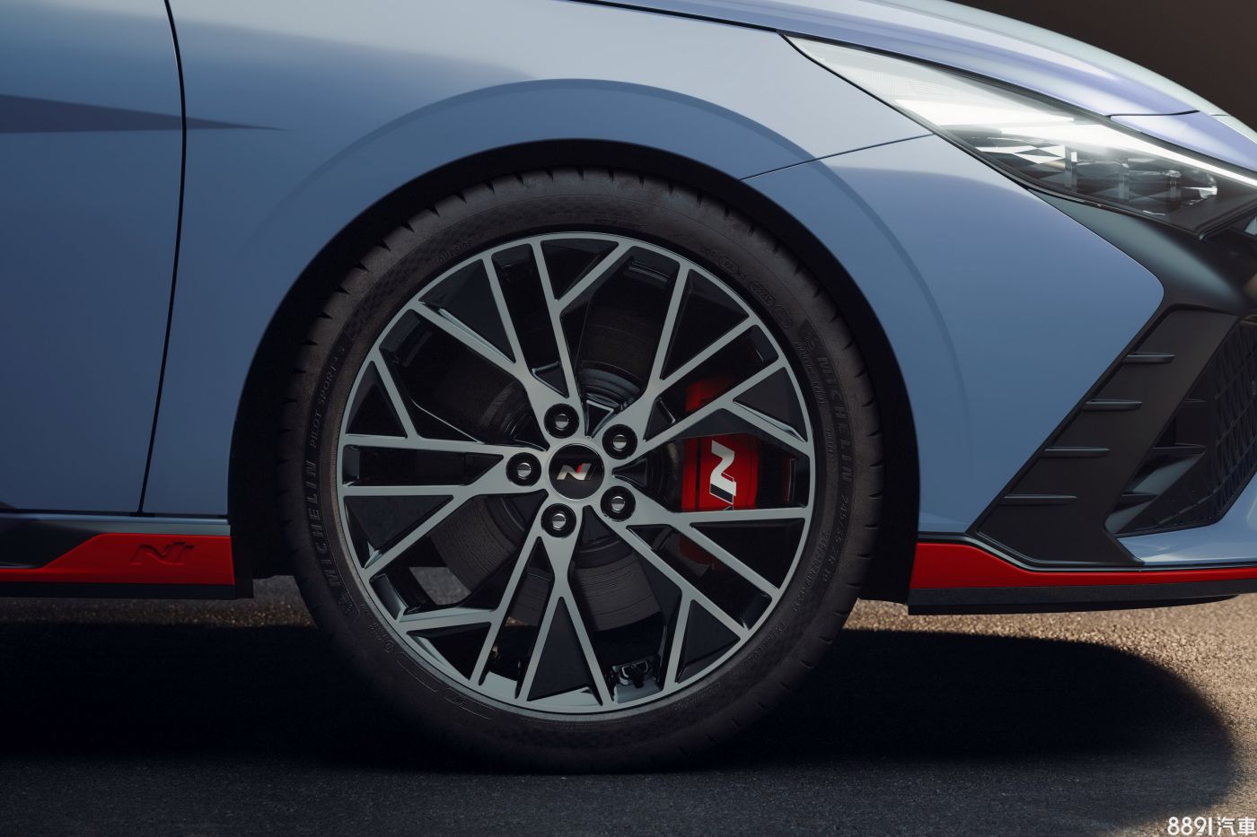 19吋鋁圈樣式除了較一般版與N Line更加有張力,並採用360mm煞車碟盤,以及上有N字樣的紅色煞車卡鉗,配胎為245/35R19的米其林PS4S跑胎。