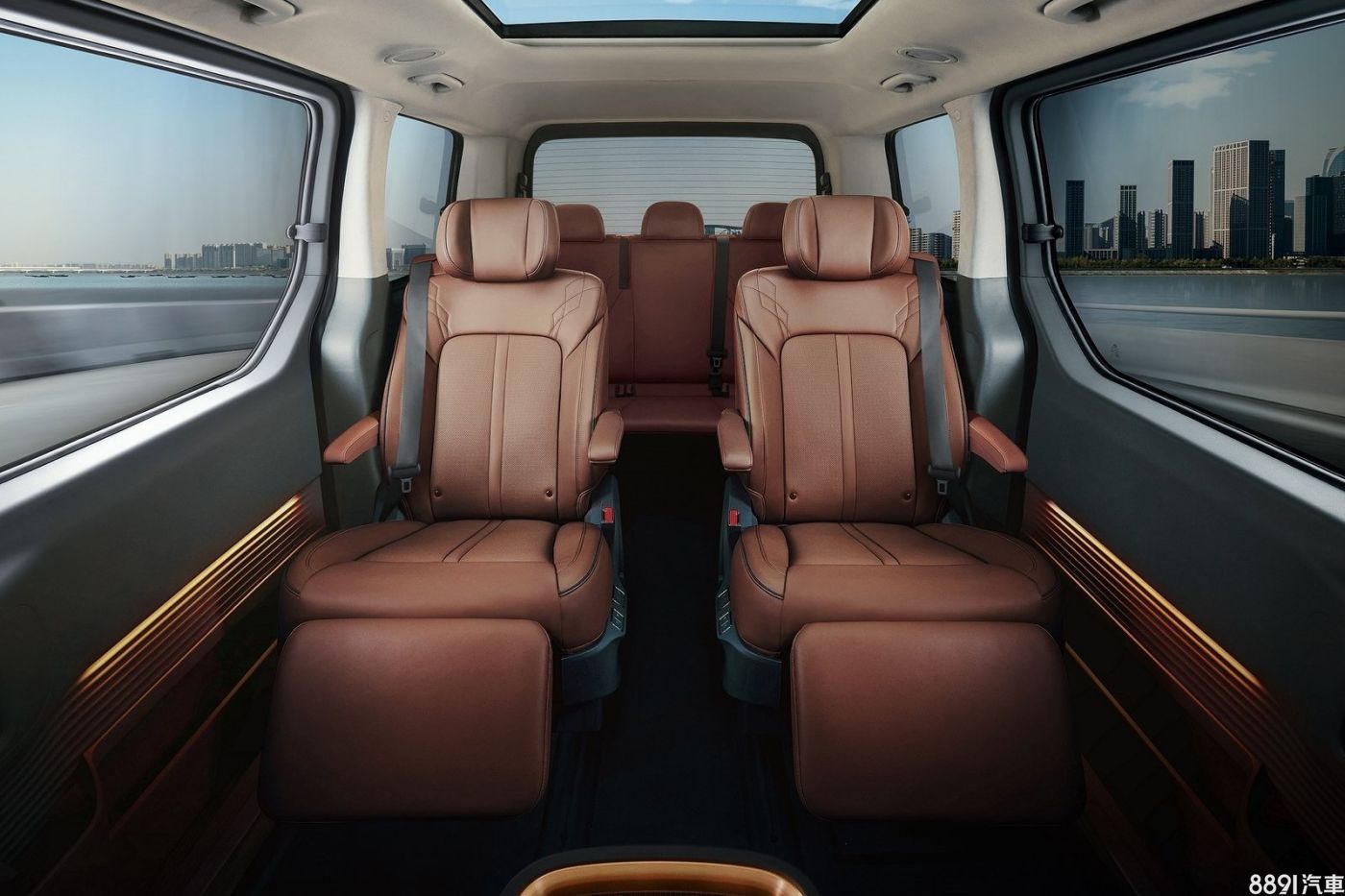 座艙參考海外規格,最多提供11人的載運配置,高規的Staria Premium更有專屬7人座配置,佈局高檔MPV市場需求,其第二排配備兩張獨立的Ottoman座椅,具備蝴蝶頭枕與延伸腿靠,並設有一鍵放鬆模式,自動調整至半躺臥的舒適坐姿。