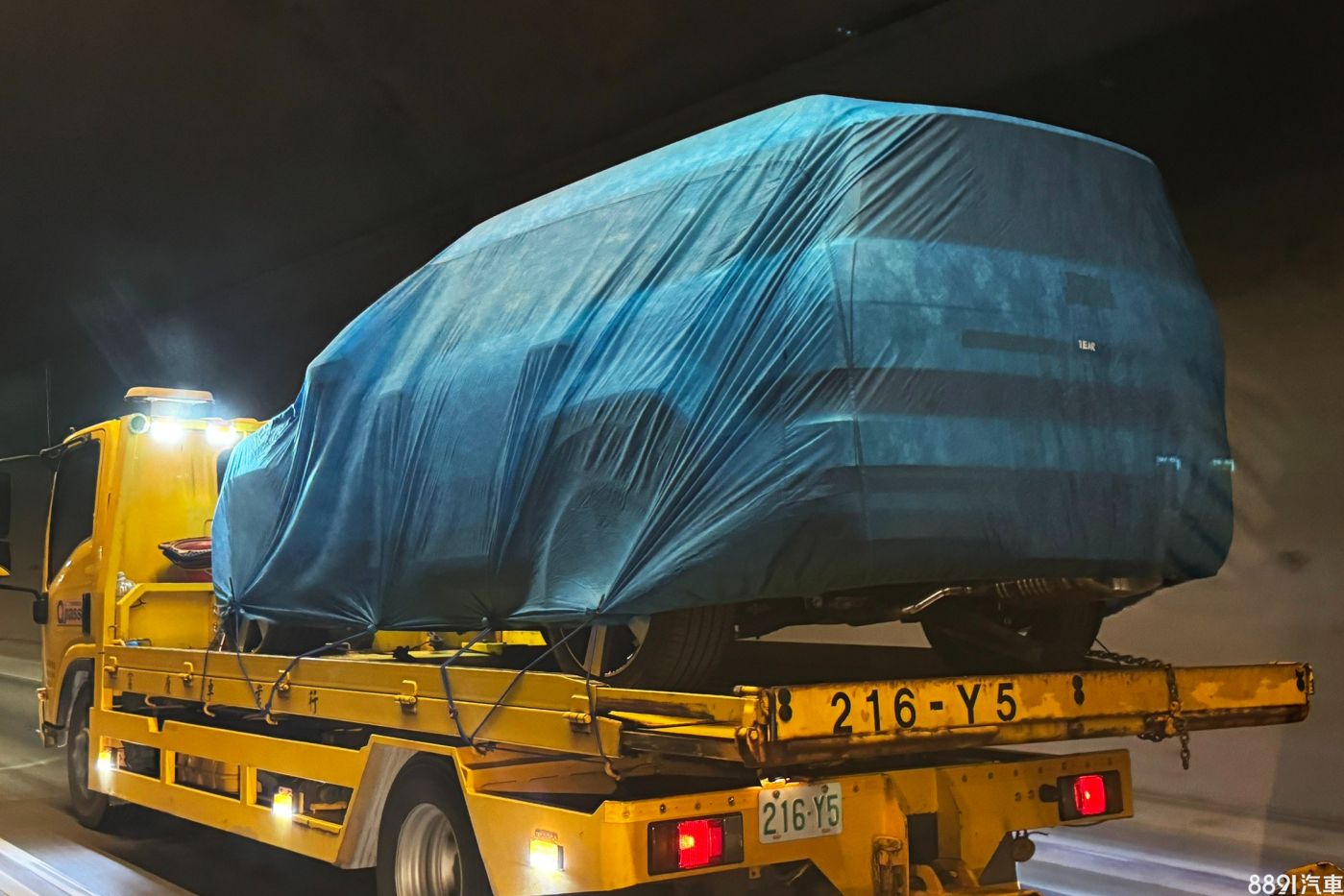 大面積的尾門採平整化設計,捕獲車款針對尾門中央的「歪H」廠徽和「SANTA FE」車型銘牌,均以黑色膠布遮蔽。尾燈則結合深色尾門飾板呈現橫貫風格,若點亮則會發現新頭、尾燈內部皆採H狀排列,來與品牌拼音字首做呼應。