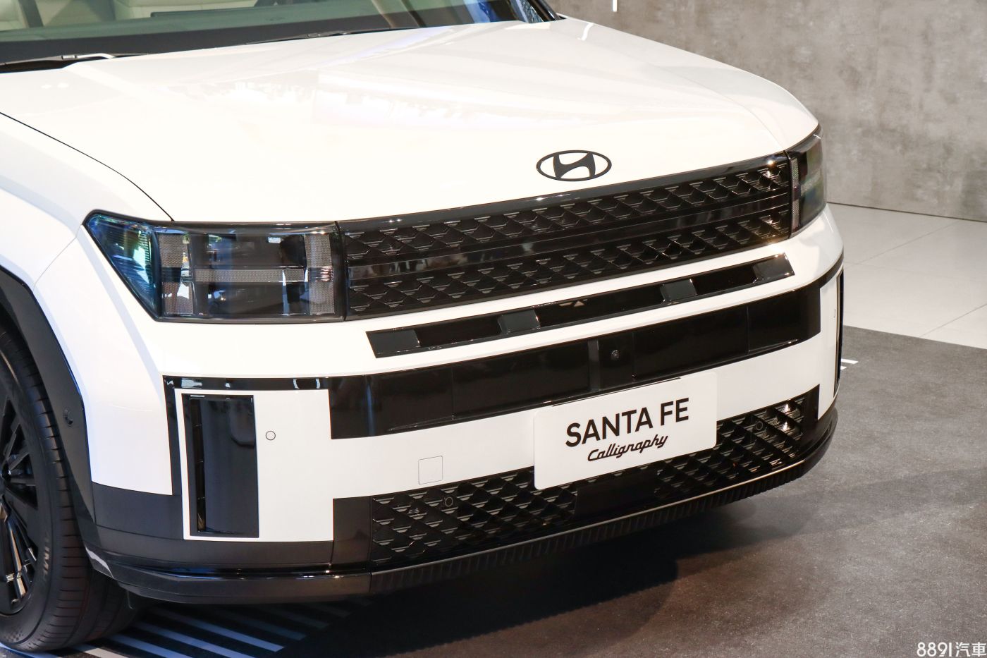 「Calligraphy」意指墨寶,品牌將之形塑為主打豪華感、可客製的系列車型。Santa Fe Calligraphy乃基於原頂規「GLTH-C Premium」打造,內外配備都有感升級,不僅配合風格主題換上亮光黑車身飾條,有別於其餘車型的矩形格柵,網格狀的水箱罩和保桿進氣壩,亦是Calligraphy版的獨有特徵之一。