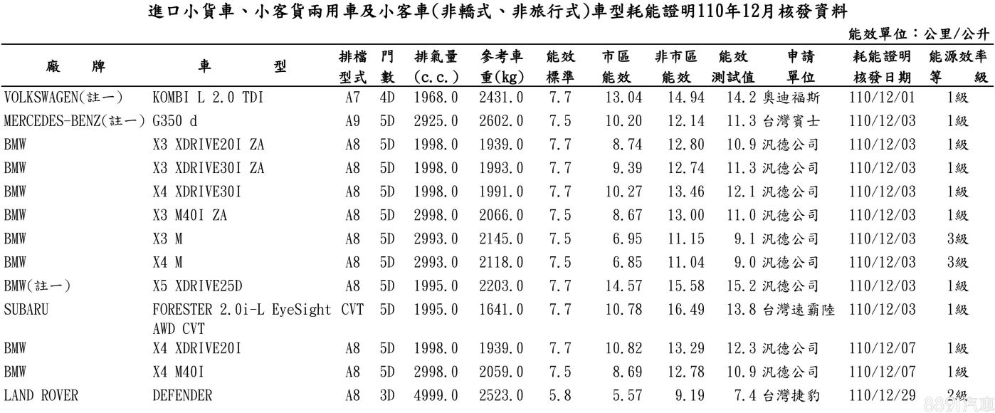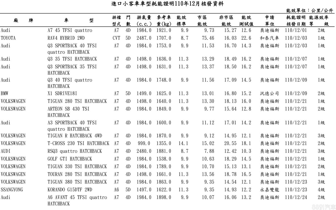 進口車款方面,先前已於11月油耗數據出現的Arteon 430 TSI車型,目前僅知是預計明年上半年會在台推出的新動力車型,12月分則是送測Shooting Brake版本,繳出12.8 km/L的平均油耗成績,順帶一提,Fastback版本為12.5km/L。