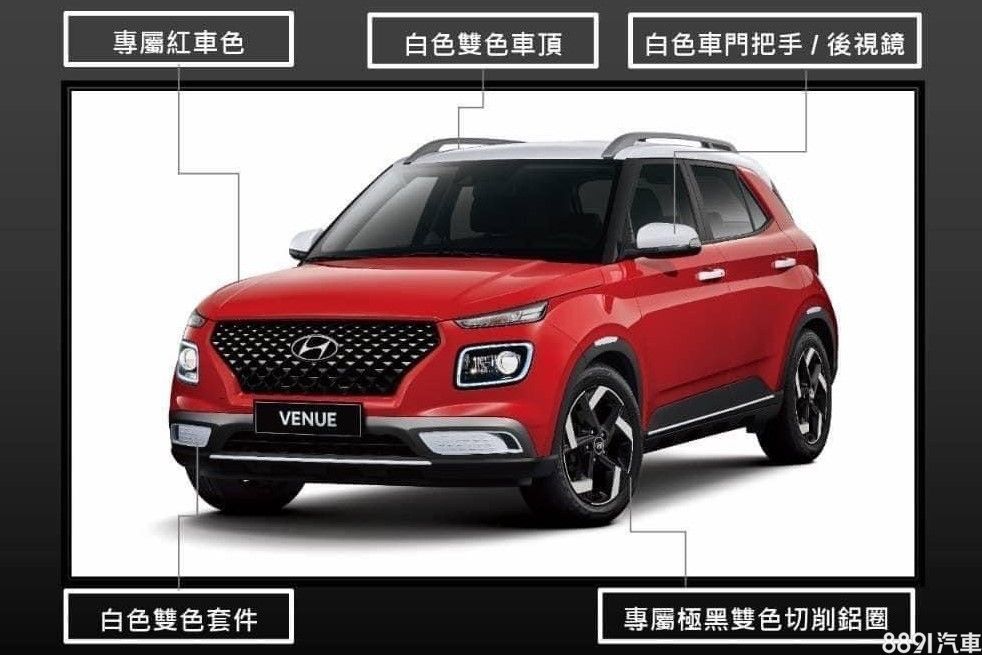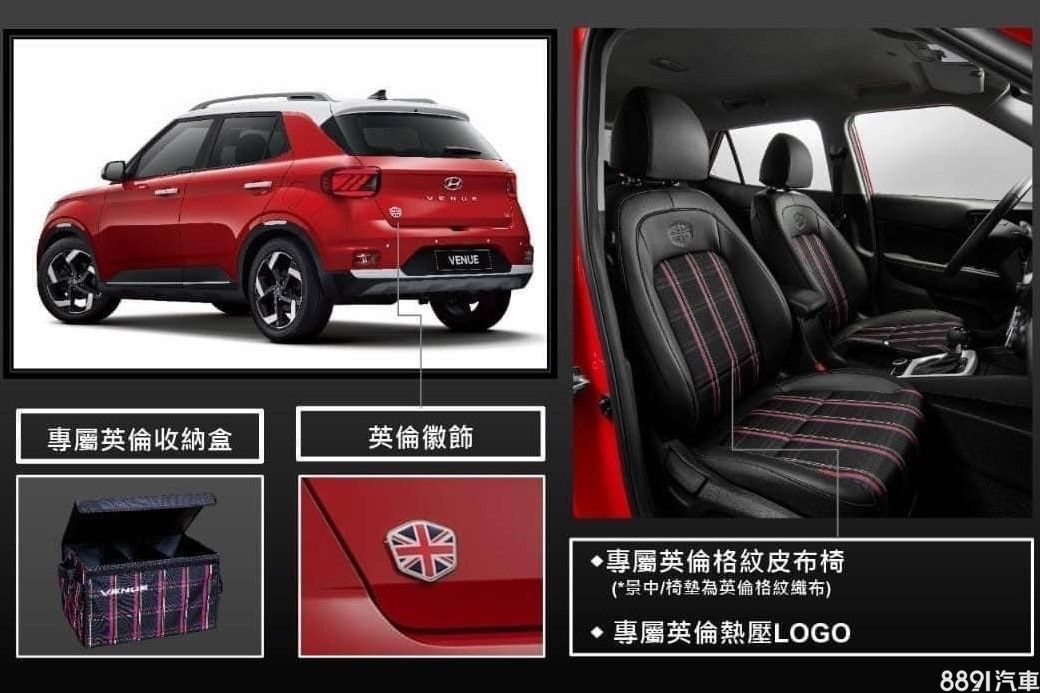 現代為Venue推出特仕車,提供GLB英倫及GLC英倫兩版本,其是以GLB雙色及GLC等級為基礎加價1萬,售價分別為75.9萬與79.9萬,共計限量200台。