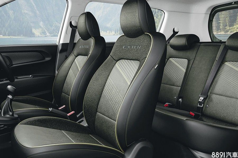 Exter車室採五座配置,雖說採黑色主調,但搭配水藍色、萊姆色或銀灰色的細節風格可選。椅面材質則按車型等級,採用全織布椅面或皮布雙織的混拼包覆。