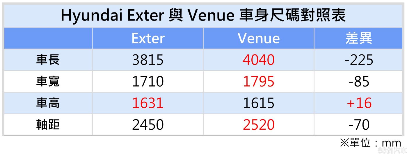 Exter是Hyundai新開發的小型跨界休旅,身形除了車高外,各尺碼都比品牌在台最入門的Venue更小巧,並率先於印度市場發表上市,未來預期ASEAN東協國家和其他新興市場也會陸續跟進販售。