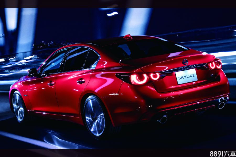 回到小改Skyline身上,除了強化駕駛輔助機能,修飾後的外型設計也成為改款重點,並打破Skyline與GT-R分家以來的獨立性,不但在小改款上換上近似GT-R風格的大型中央氣壩,尾燈光條也回歸經典的雙圓燈造型。而如此號稱「GT-R化」的外型調整,在日本當地媒體普遍帶來正面迴響。