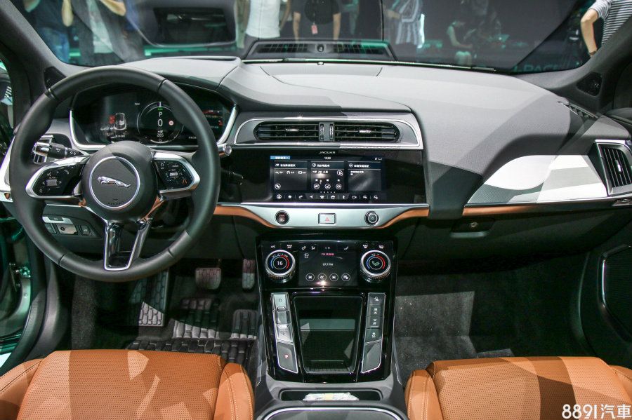 I-Pace內裝大量採用數位化介面以取代實體按鍵,並配備了12.3吋數位儀錶,搭配中控台上方10吋、下方5吋的雙觸控螢幕介面,為車室打造科技質感。系統除了提供原廠中文導航、Apple CarPlay手機連結機能,部分車輛資訊也可藉由HUD抬頭顯示器呈現。