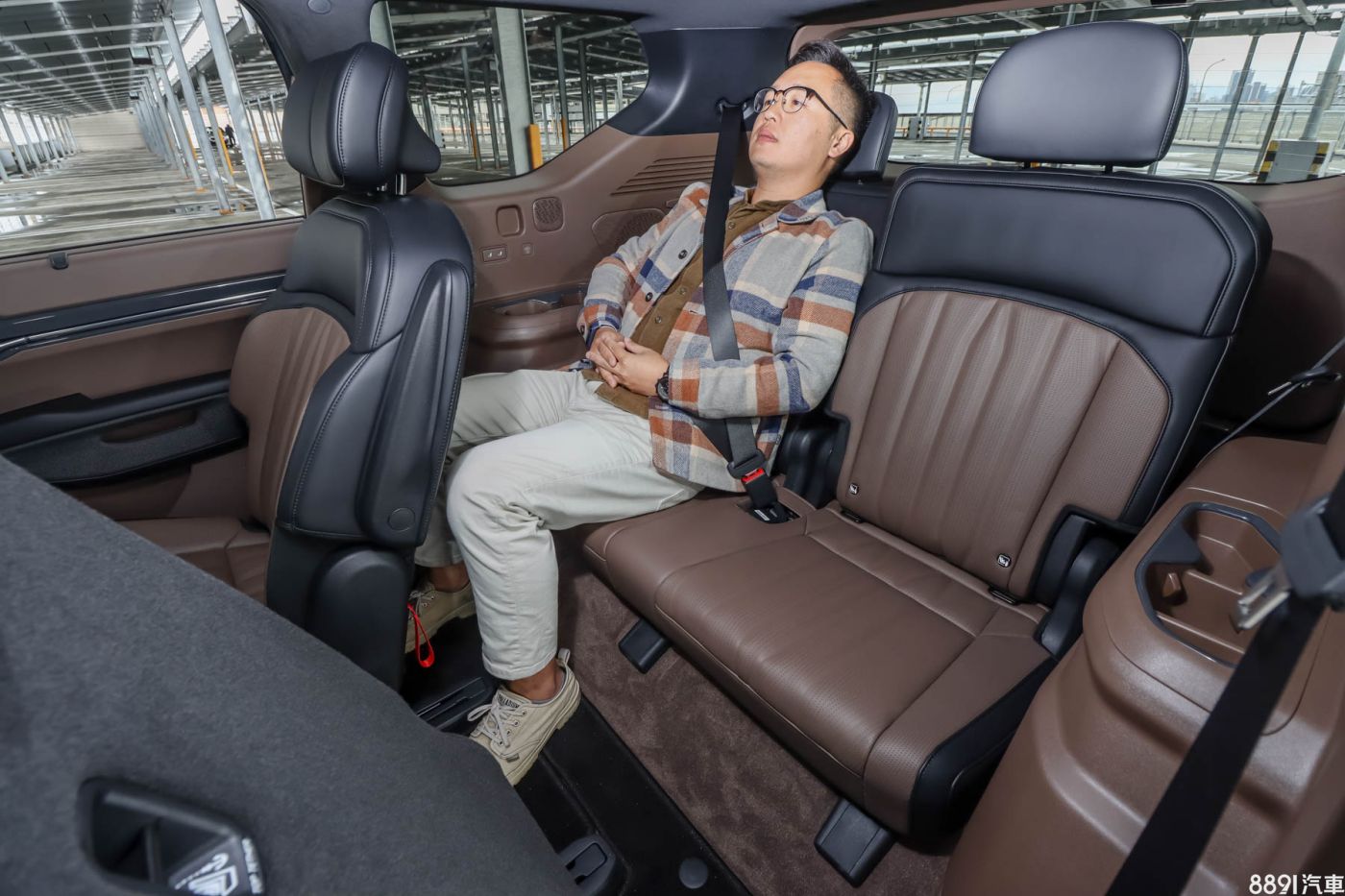 第三排為兩人座設計,乘坐空間尚可,不算寬敞但也不覺壓迫,雖說椅面造型相對平板,但仍具備電動椅背可調,有助降低長途行車可能帶來的不適。
