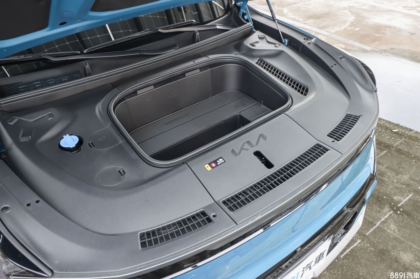 入門款引擎蓋下則另有90L的置物槽可供收納使用,圖中頂規款則由於多一具前軸馬達,前行李廂空間也被壓縮為52L。