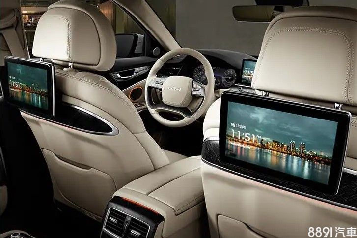 作為韓國政商名流坐駕,K9採用獨立雙座設計,中央扶手整合多媒體與座椅電調按鍵,並提供兩具平版螢幕。