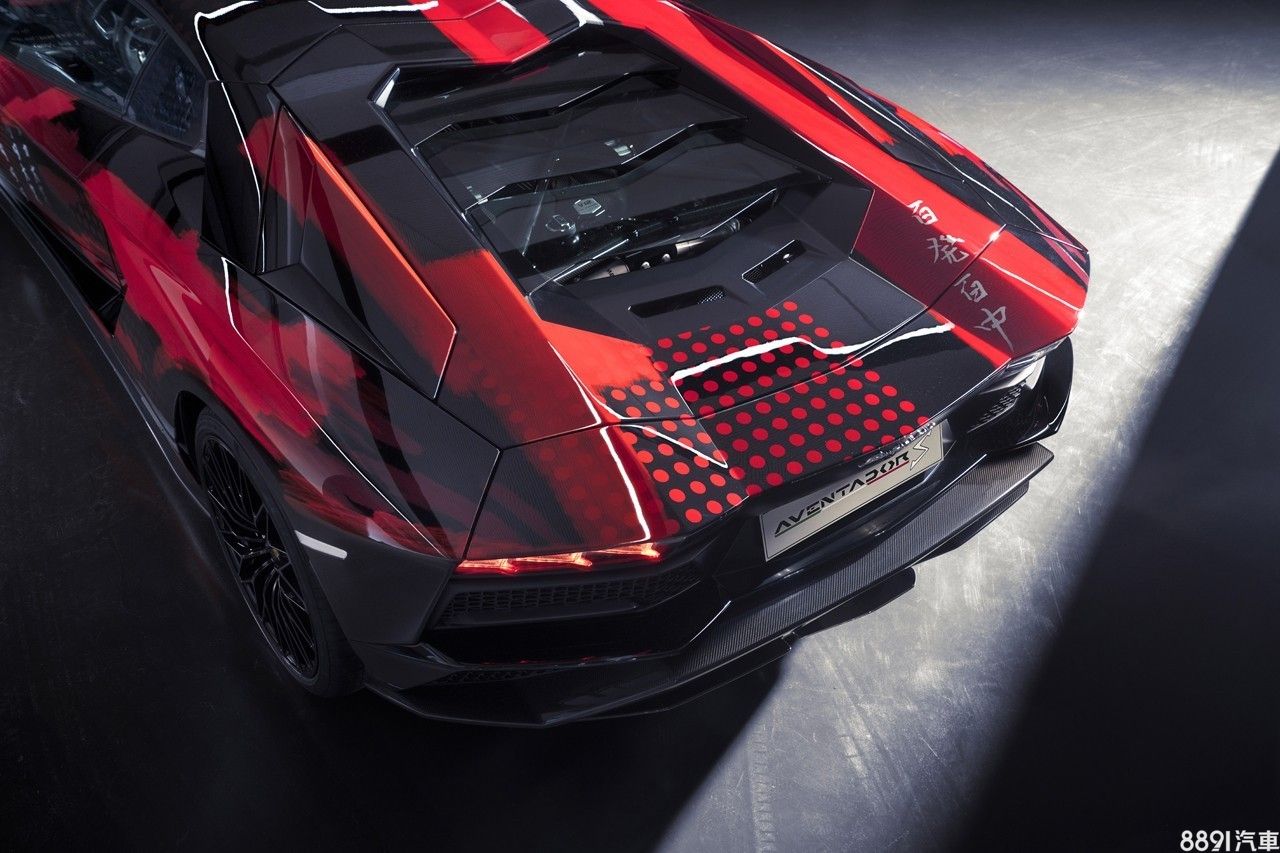 這輛Aventador S內外都很有山本耀司的味道,取自旗下2020年男裝外套設計元素,以大量黑、紅、白色彩作為基底,配合水彩筆觸營造隨性活潑的感受。