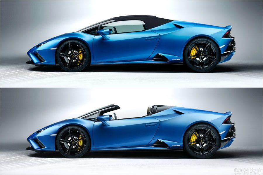 Huracan Evo RWD Spyder的車重相較於Coupe版本多了88kg(1509kg),至於敞篷機構則可在時速50km/h內以17秒進行開啟/關閉動作。