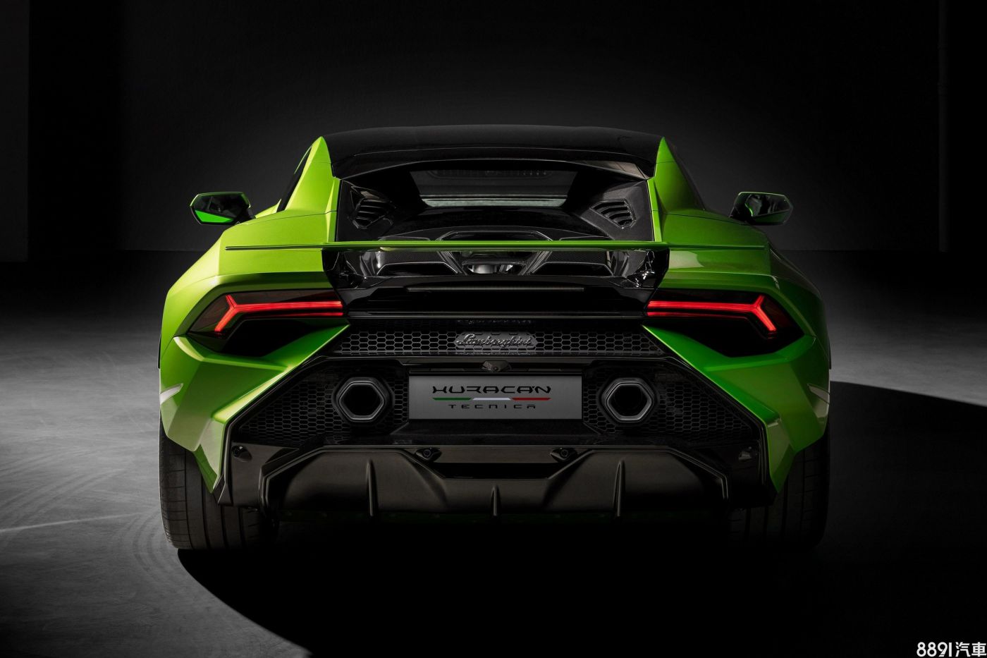 車尾同樣經過重新設計,相較於Evo來得簡潔,也不若STO乖張,並以牌照框兩側的六角尾管做為Huracan Tecnica的識別亮點,至於掛上的新尾翼,讓Huracan Tecnica相較於後驅版Huracan Evo,後方下壓力增加了35%。