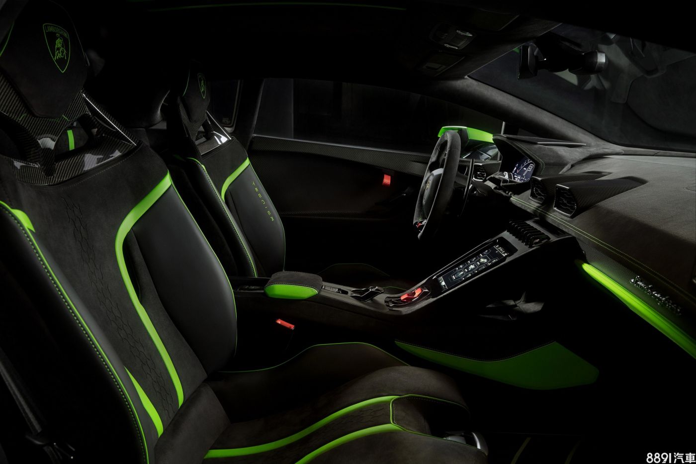 座艙則維持Huracan家族一貫的風格,包含支援Apple CarPlay的多媒體系統,並提供輕量化門板、輕量化防滾籠、四點式安全帶等配備可加選。內裝用料及選色亦可透過原廠Ad Personam客製化服務,來按消費者需求做搭配。