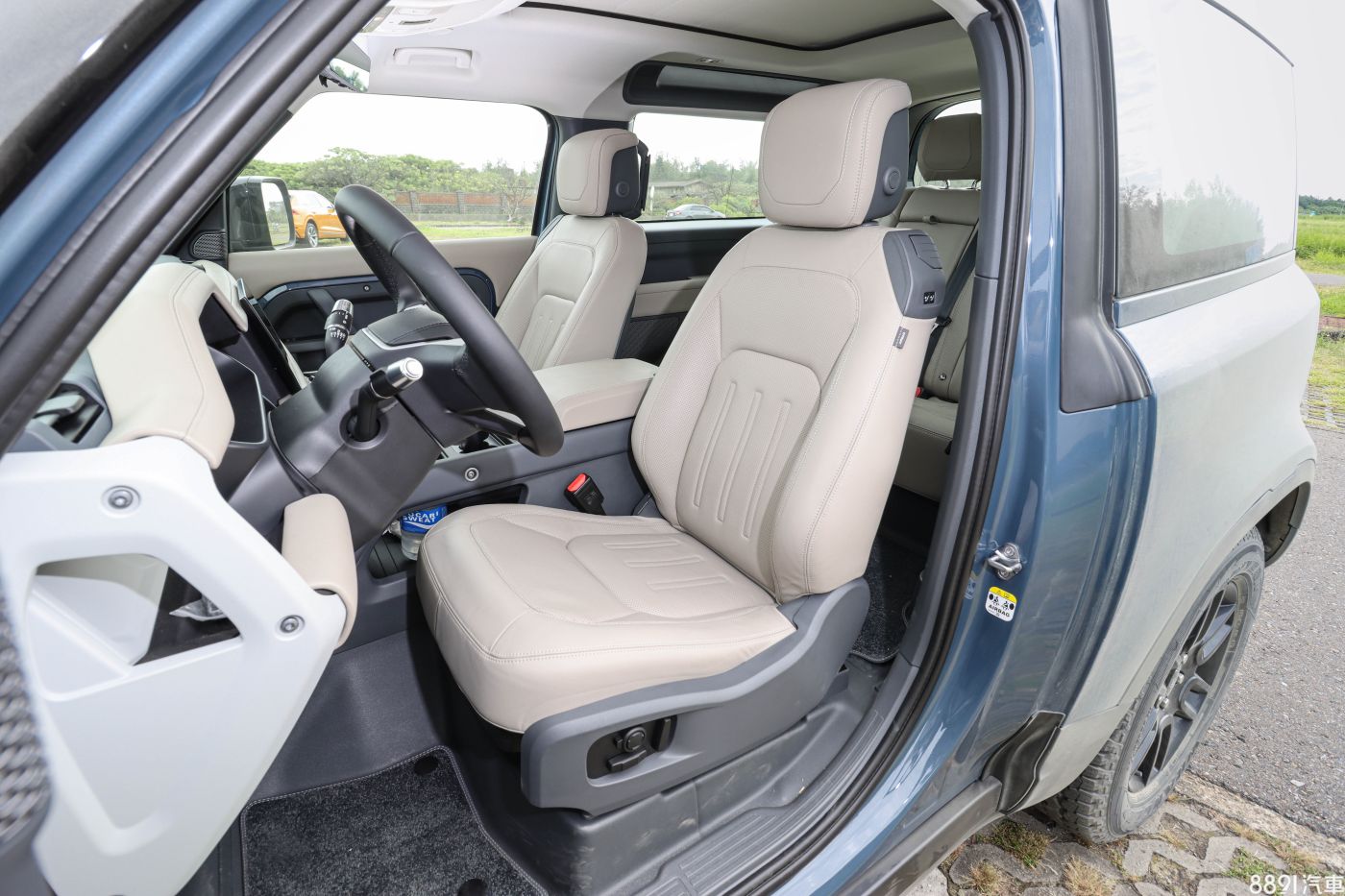 Defender 90座椅採粒面真皮包覆,雙前座皆電動可調,示範款則加價5.37萬升級質地較細膩的溫莎真皮鋪面。