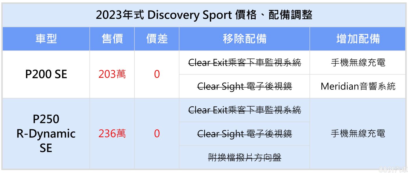 雖說2022年式車型才上市不到3個月,Land Rover已宣布2023年式Discovery Sport在台接單,延續P200 SE和P250 R-Dynamic SE雙車型編成,售價也同樣維持在203萬和236萬,即日起可開放訂購,原廠預估最快7月可展開交付。