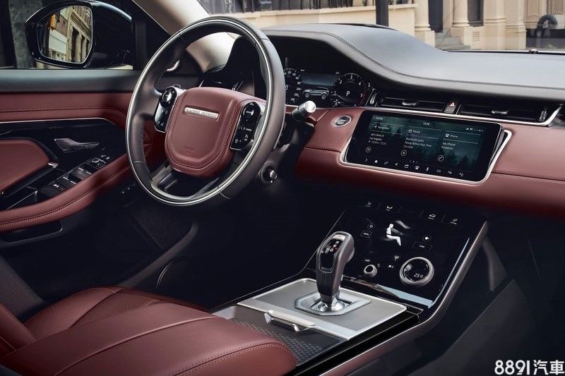 新年式Evoque內裝維持現有三螢幕的布局,由12.3吋數位儀錶,搭配中控台上下各一具10吋觸控螢幕組成,而P300 HST車型偽強調其動感氛圍,方向盤級車頂篷均採用麂皮包覆。