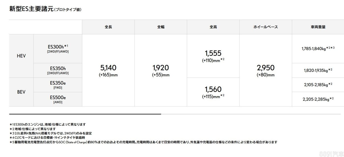 與此同時,日本Lexus官網也上架「THE NEW ES」的前導網頁及改款亮點。首先,新一代ES採用改良版的TNGA-K平台,可以兼容HEV油電與BEV純電動力,提供包括ES 300h、ES 350h、ES 350e與ES 500e等四種動力選擇。