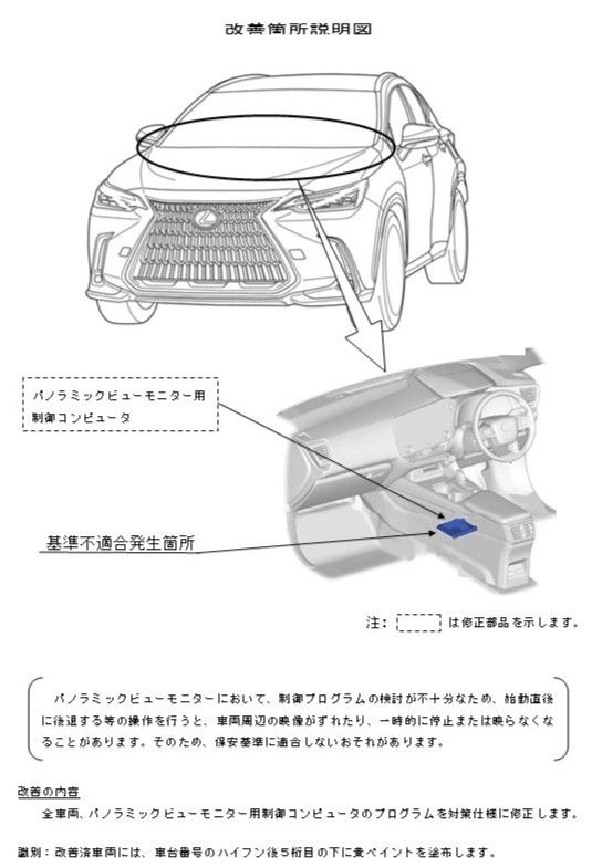 召回原因為360度環景影像監控系統,控制程式設計考量不周,在車輛啟動後立即執行倒車動作時,車輛周圍區域影像可能會出現錯位、暫時停止或無畫面的情況,恐有行車安全上的疑慮。原廠將針對受影響車輛,執行環景影像系統電腦程式修正,確保類似情形不再發生。