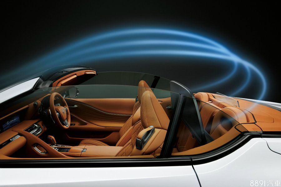 除了敞篷結構搭配隔音材質外,Lexus也在後座加裝迴風網及導風板,能抑制不舒服的風流,風切聲也會略小一些,搭配ANC主動噪音控制系統,進一步減少低頻噪音,提升乘坐舒適性。