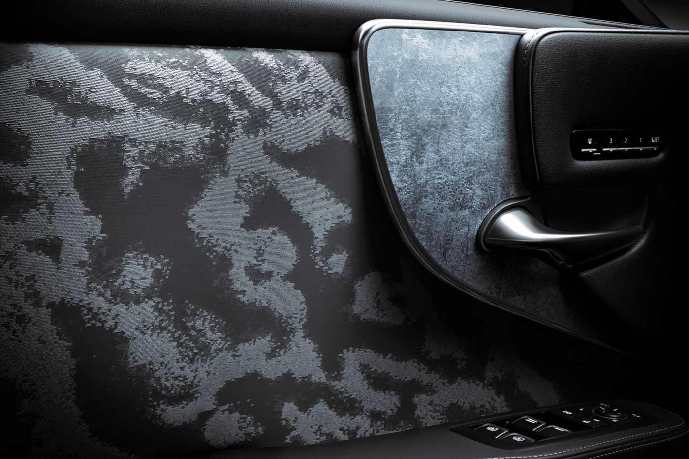 小改款LS在旗艦版以上增列「KIRIKO飾板」及「西陣織飾板」2款價值50萬的內飾,靈感均源自日本傳統工藝。現場展示款搭配「西陣織飾板」,源自京都西陣地區之傳統織布技術,其花紋圖案取自月色倒映。
