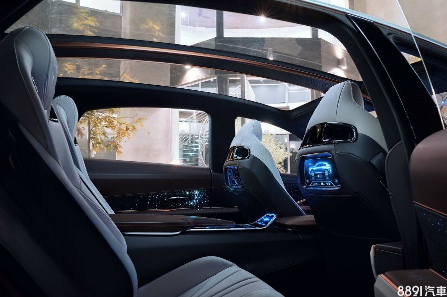 採4人座配置的LF-1 Limitless Concept,擁有全景天窗,兩側車門飾板加入如繁星般的氛圍燈,以及後座多功能顯示幕和觸控式操作介面等,既富濃厚科技感,又兼具奢華氛圍。
