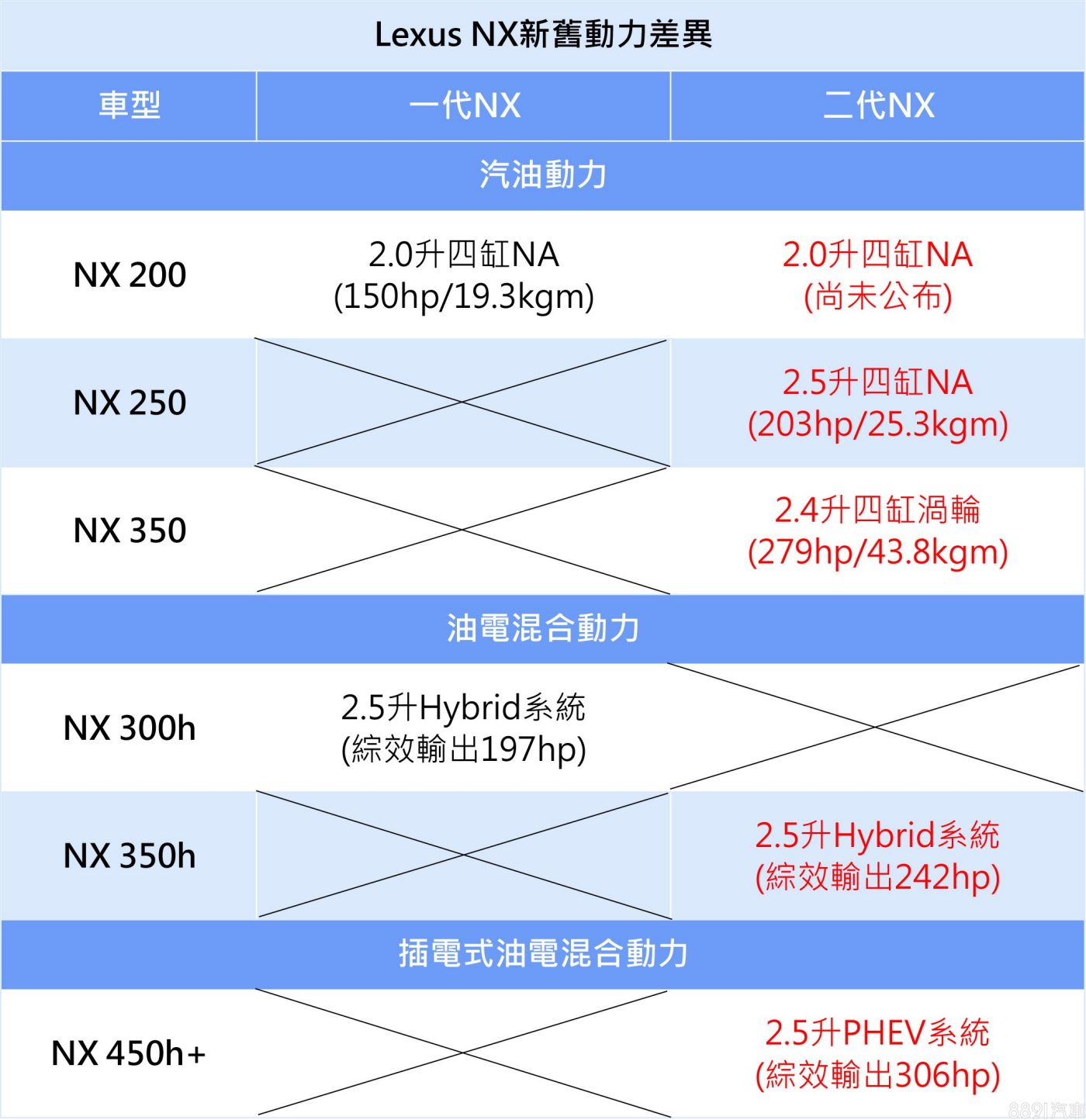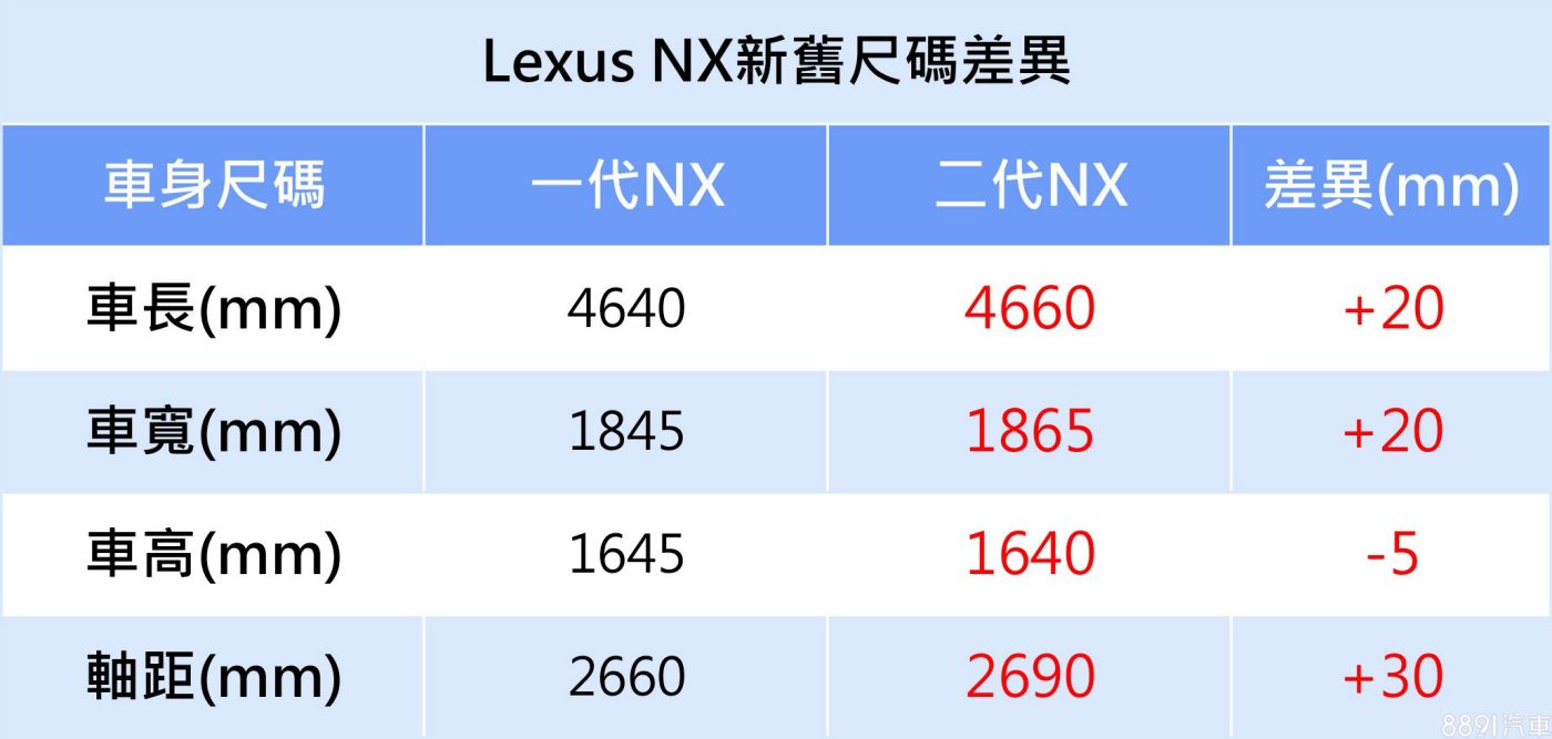 初代NX自2014年發表以來,全球銷量已突破100萬輛,在台灣更是Lexus最熱銷的車款,邁入第二代的全新大改款車型自然受到高度關注,新車裡裡外外都有大改變,更將眾多新科技灌注其中,不過在還沒見到實車前,先讓我們針對數據規格以及內外面容與前代做個比較。