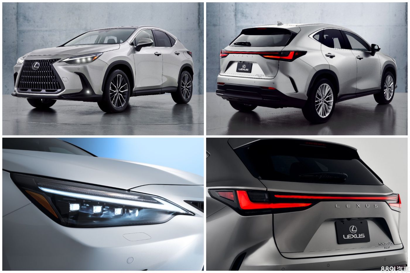大改款NX換裝GA-K平台,車身尺碼稍稍放大,身長增加20mm來到4660mm,軸距2690mm也比現款拉長30mm。外觀望去,車頭維持紡錘型水箱罩,但整體位置下移,視覺重心更低,內網也改採新設計,頭燈修改得更為狹長,並將LED日行燈整合其中;車尾換上橫貫式LED尾燈,同時廠徽也被Lexus字樣取代,成為品牌首款採用此設計的量產車。