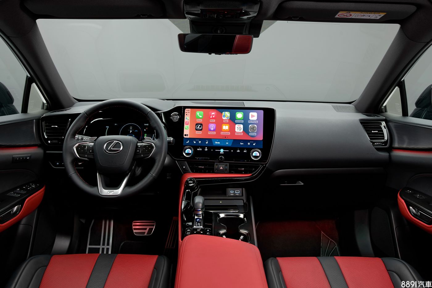 大改款NX採用不對稱式的車艙布局,內裝以黑色為基底,搭配多樣化的雙色混搭可選,中央多媒體系統改採大尺碼(9.8吋或14吋)觸控螢幕,因而移除Remote Touch操控介面,再搭配排檔桿改為電子線傳型式,讓中央鞍座的空間運用上得以更加靈活。