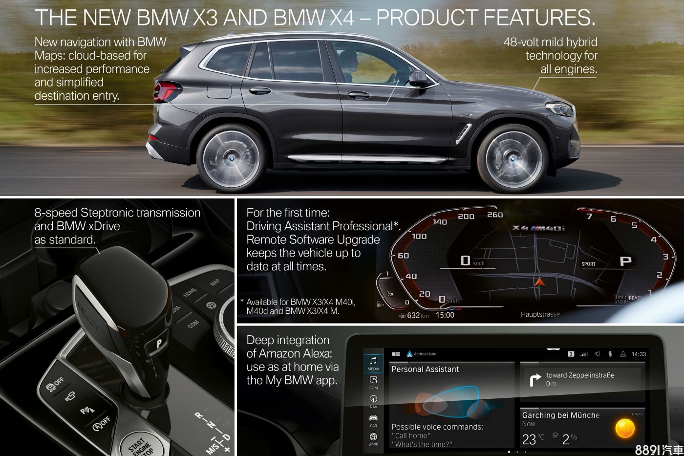 X3提供多款汽油或柴油動力選擇,統一標配四驅傳動外,並皆自小改款後導入48V輕油電系統。不過可預期國內市場仍以汽油車型為主,提供2.0升四缸的xDrive20i、xDrive30i及3.0升直六的M40i等選擇,其中184hp的入門款及360hp的頂規均維持既有輸出設定,唯xDrive30i配合排放規範略有調整,最大馬力自252hp下修至245hp,最大扭力則維持35.7kgm。