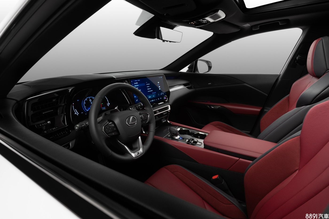 大改款RX的動力編成,提供四種選項:RX 350、RX 350h、RX 450h+、RX 500h,其中RX 350捨棄了3.5升V6 NA設定,改搭首見於新NX的2.4升四缸渦輪汽油引擎,可產生279hp/43.9kgm,搭配的是8速Direct Shift手自排變速箱,與AWD全時四驅系統,其前後扭力分配可介於75:25至50:50間。