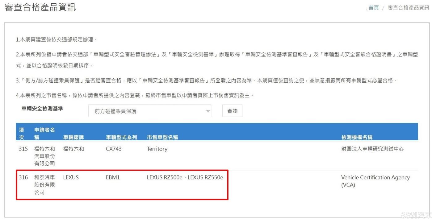 先前我們自經銷商掌握消息,Lexus RZ小改款展間已開始接單,價格尚未公布,預計11月底前正式上市。如今車安網更新審查合格產品資訊,發現「RZ 500e」及「RZ 550e」已經完成登錄,證實新車上市已進入倒數。