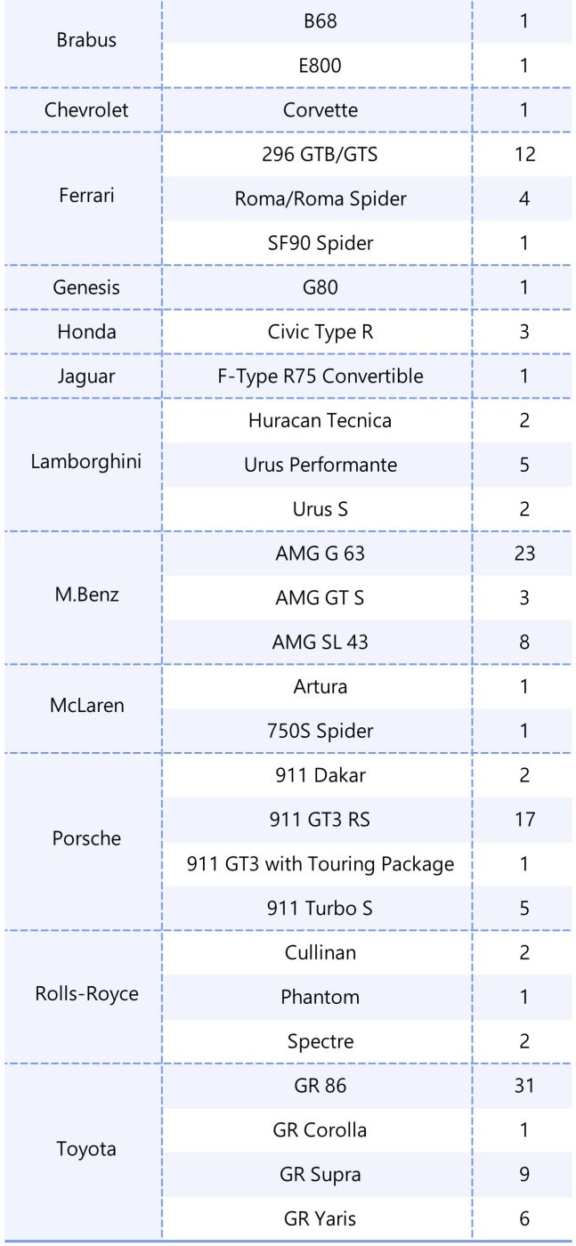 Ferrari本月領牌12輛296 GTB/GTS,再加上Roma車系與SF90 Spider可說是斬獲頗豐,另外特別點的車還有Genesis G80,這輛車並非首次引進,不過按照南陽說法該車是作為公司內部使用,並沒有對外販售的計畫。