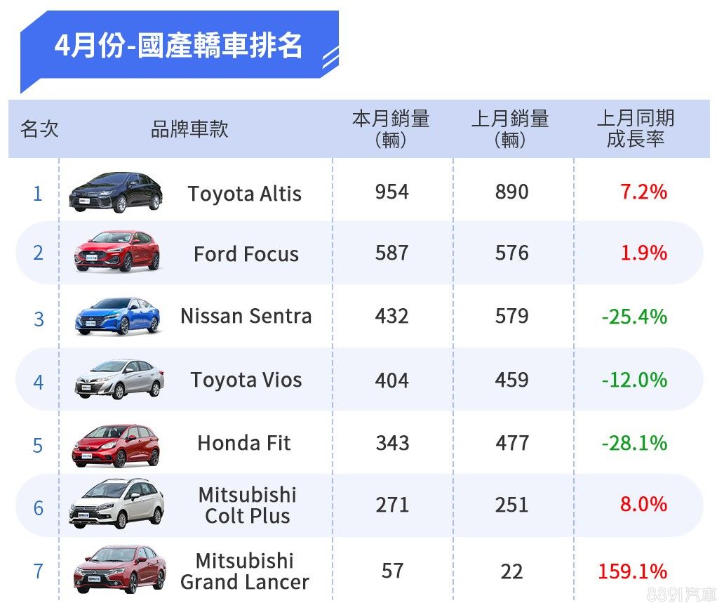 相較於國產休旅的熱鬧,轎車就顯得格外冷清,即便是「昔日神車」Altis也不敵市場大環境,銷量持續下探,而且榜單上未來還會減員,因為三菱Grand Lancer已經在日前停產,目前交的車都是預先生產,待庫存消化完畢後就會下架!