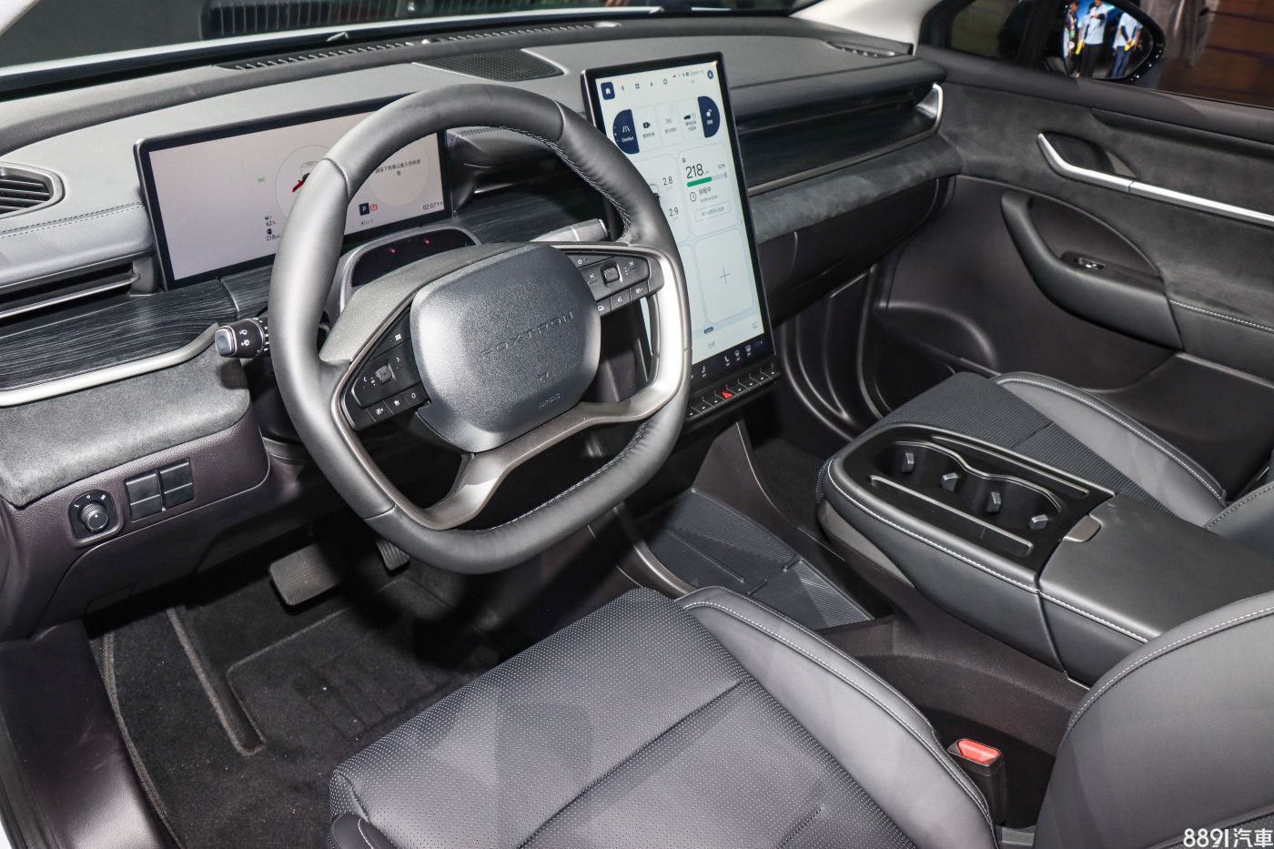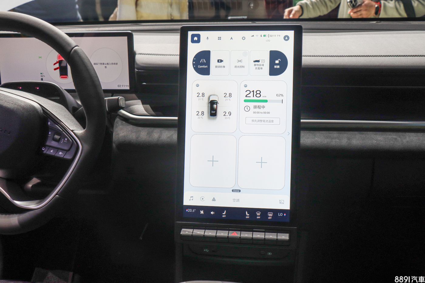 北美版Model C內裝與現售n7差異不小。首先是搭載與Model B同款方向盤,中央鞍座經過重新設計、不再與中控台相連一起,騰出置物空間可利用,中央15.6吋觸控螢幕尺碼雖然一致,但顯示介面及軟體優化之外,也新增了實體按鍵,展示車還有類麂皮門板+內飾、木紋飾板等等堆疊,質感不俗。