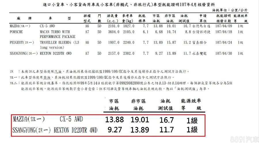 新年式CX-5柴油4WD車型,平均油耗為16.7km/L,能源效率等級達1級水平,但因為日本原廠仍在調查過去柴油車引擎的問題,上市具體時間仍尚未明朗。