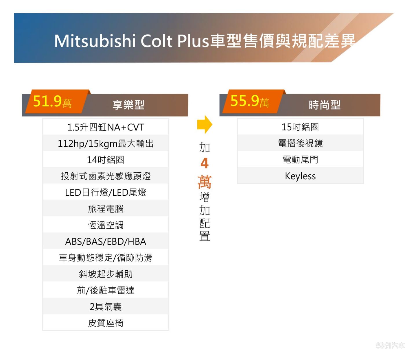 最便宜 Mitsubishi Colt Plus(51.9~55.9萬)