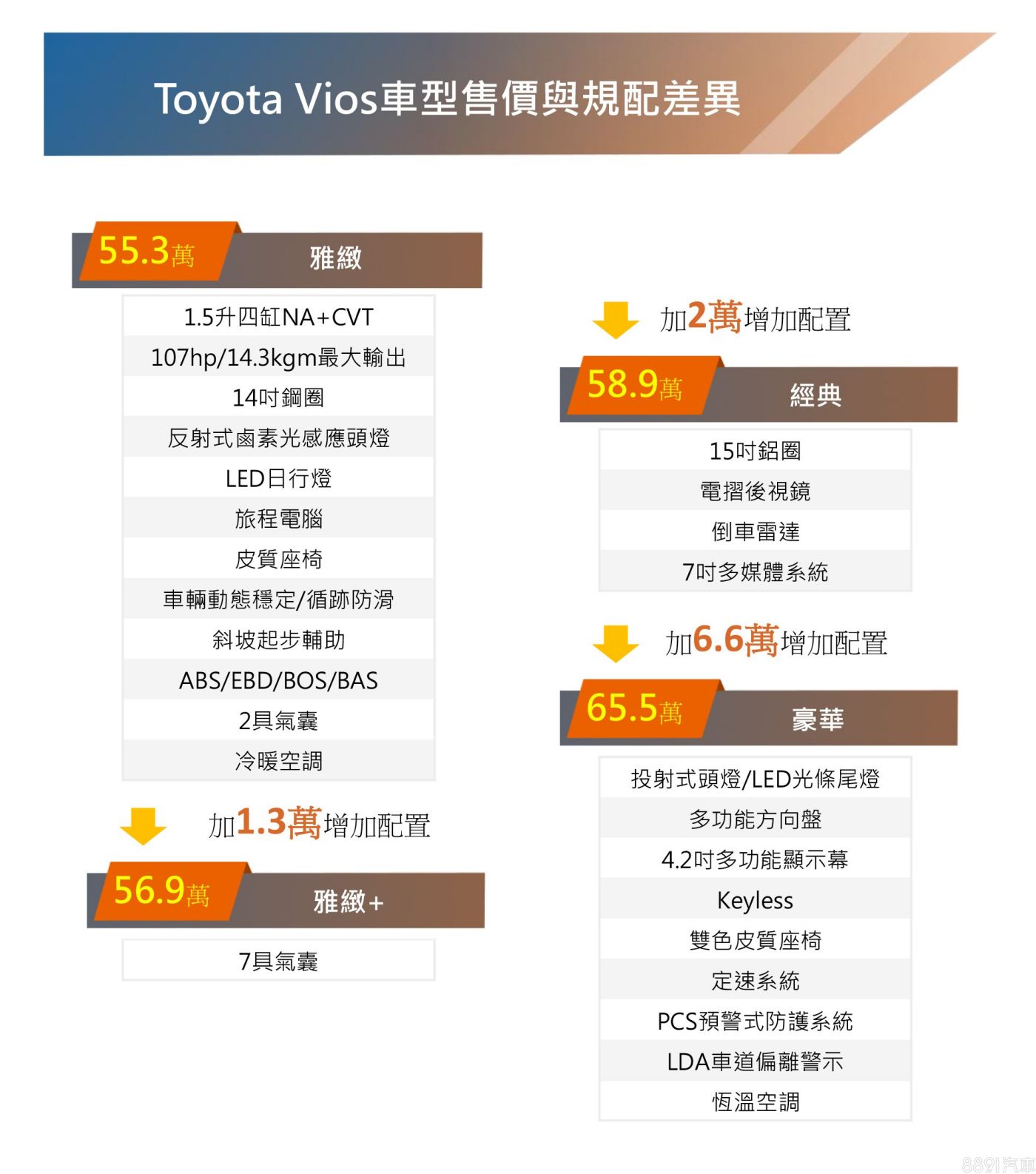 最好養 Toyota Vios/Yaris(55.3~65.5萬/58.9~70.9萬)