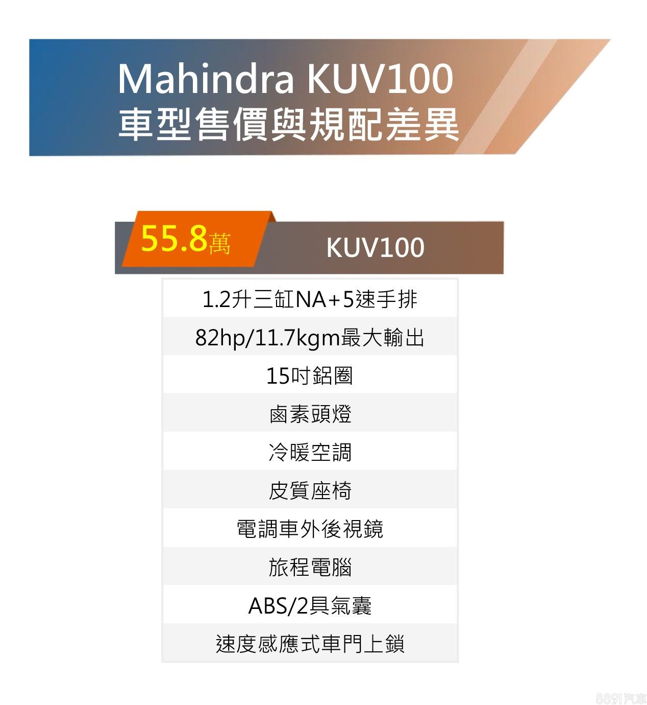 最稀有 Mahindra KUV100(55.8萬)