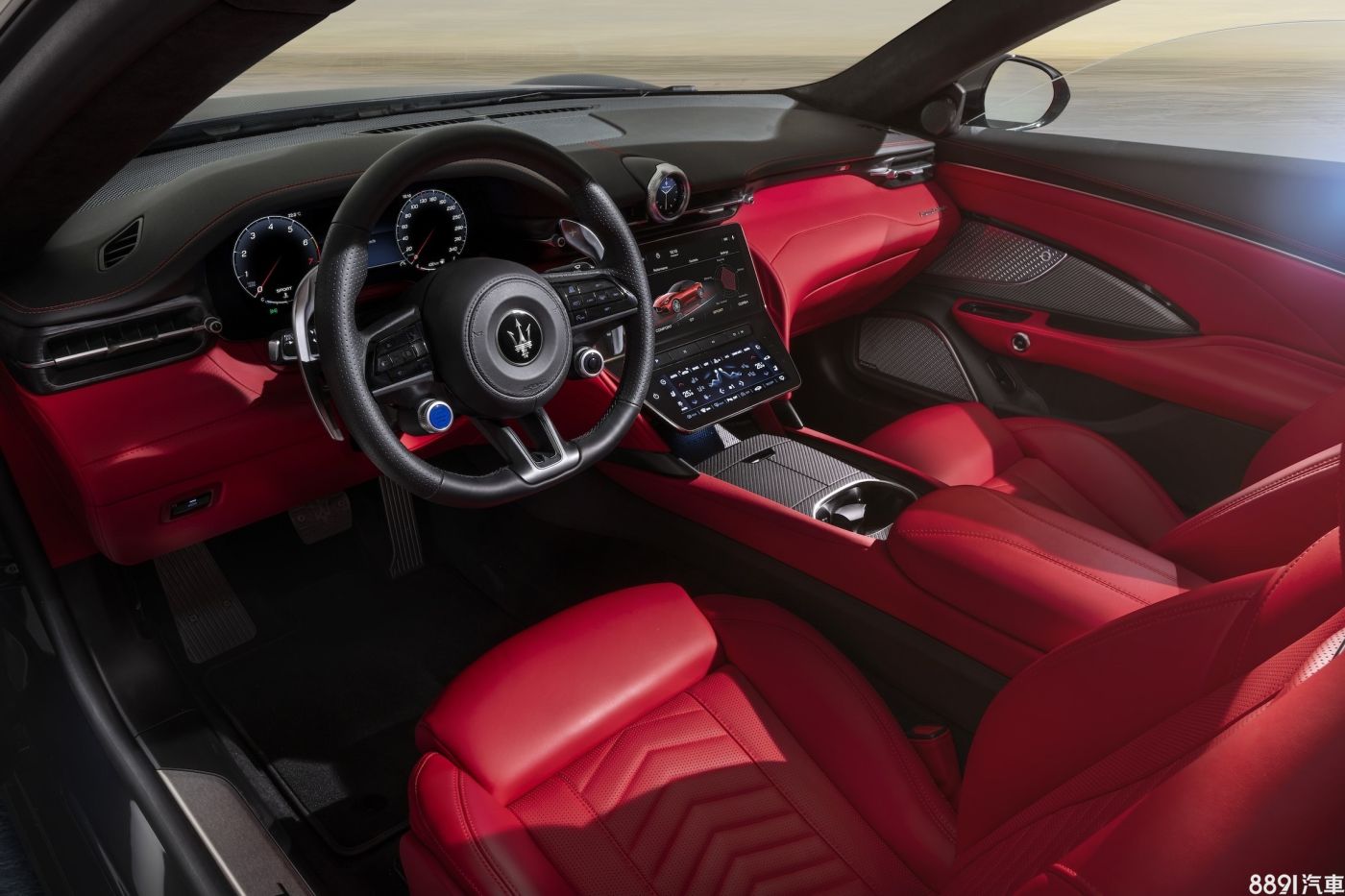 內裝沿用GranTurismo的配置,採用12.3吋馬鞍型數位儀錶,中控台採用一體式玻璃面板設計,由12.3吋+8.8吋觸控螢幕上下相連組成,整合車頂開關、空調、座椅調整等功能,並且標配14揚聲器Sonus Faber高階音響系統,進一步提升車內視聽娛樂享受。