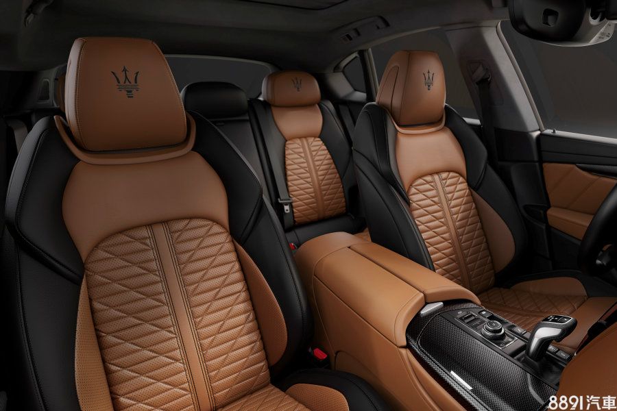 內裝部分以駝黑雙色鋪陳,搭配金屬飾板點綴,其跑車型座椅更以Pieno Fiore頂級天然皮革包覆,輔以對比色三叉戟頭枕刺繡,駕駛座具備12向電調附2組記憶功能。其他高檔配備諸如17支揚聲器的Bowers & Wilkins音響系統、電動車門輔助吸合功能、後座側窗電動遮陽簾、環場氣氛燈等也是一應俱全。